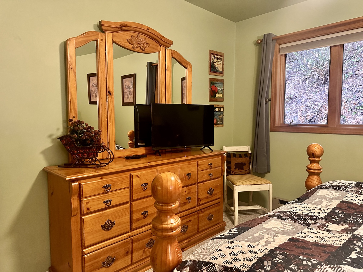 Cabin is beautiful. One of the best we have stayed in for New Years. Needs a liquid/dry measuring cups. I've been looking for a cabin with ESPN. All the bowl games are on that channel. I know I'm not supposed to be caring about football so much, but it would be nice to have the option to watch a few games. Would rent it every new years if it had ESPN. I will keep searching.
