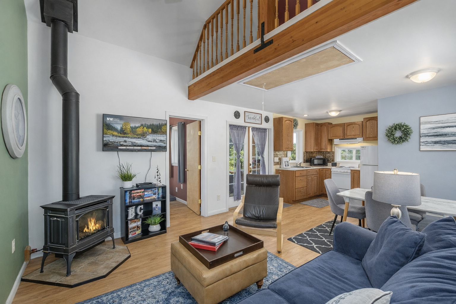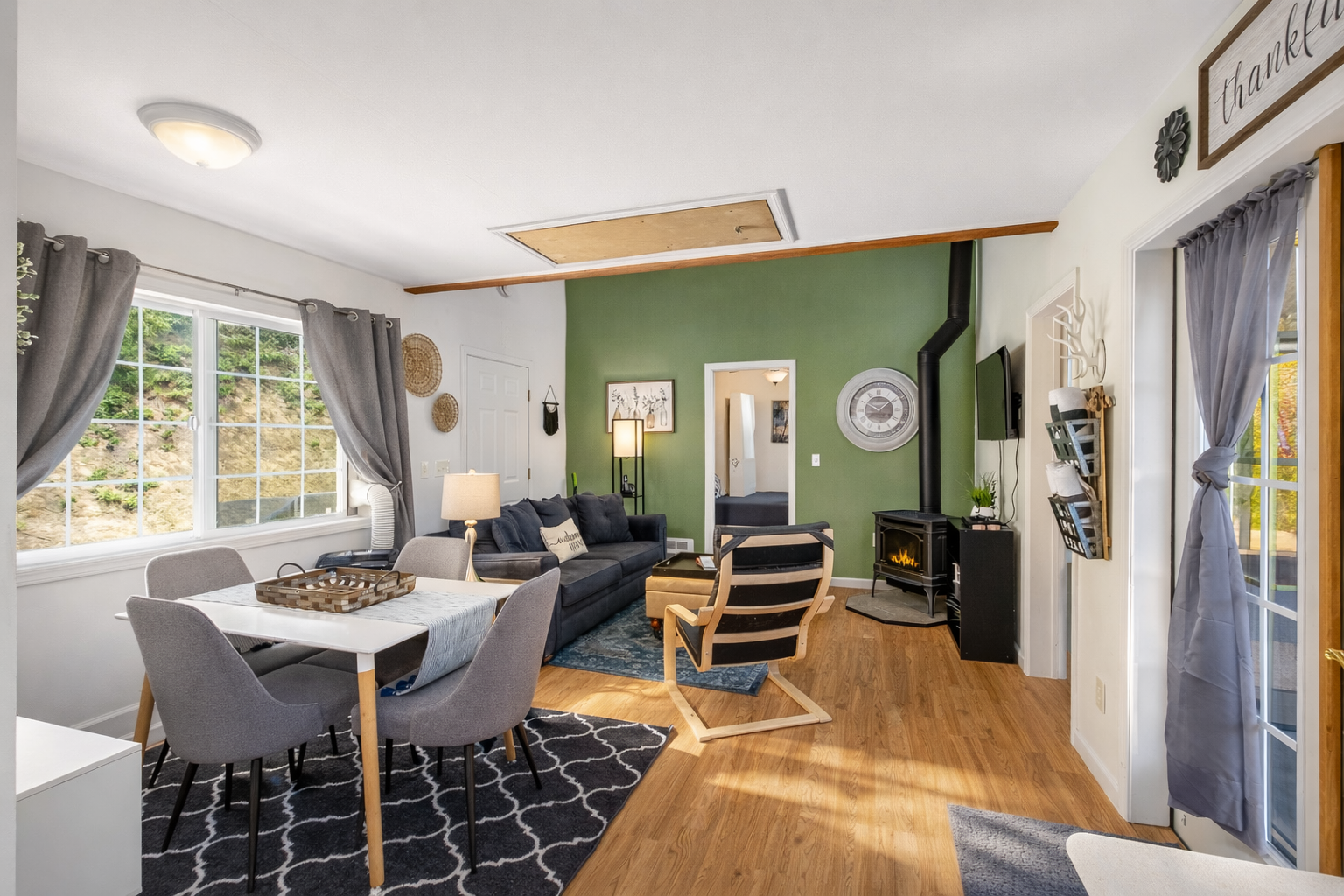 The cabin is in a great location for staying near Leavenworth without all the hustle and bustle of the city. It is surrounded with beautiful landscapes and the evenings provide excellent stargazing. The space is small but with only 3-4 adults it’s sufficient. However, take note only 1 bathroom and no mirrors in the bedroom so getting ready can be a challenge. The yard was a decent size for bigger dogs and the dog supplies available was a nice touch. Overall, good stay for location and price.