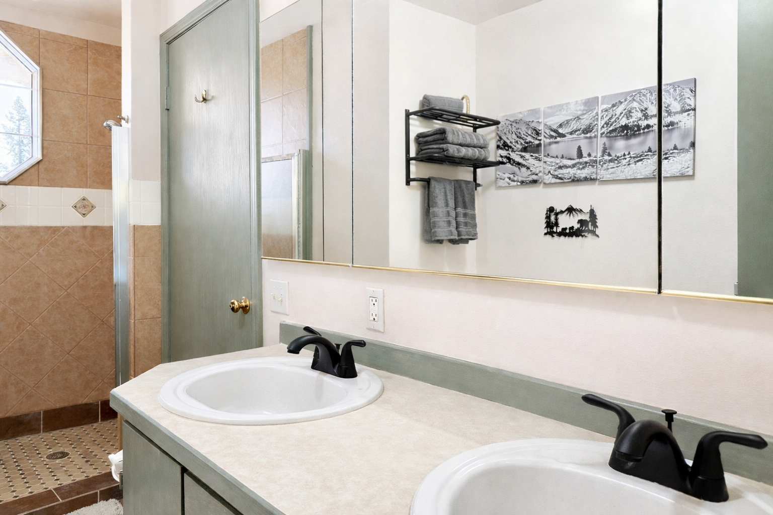 • King Bedroom 1: Custom hand-painted mural of local mountain scenery
