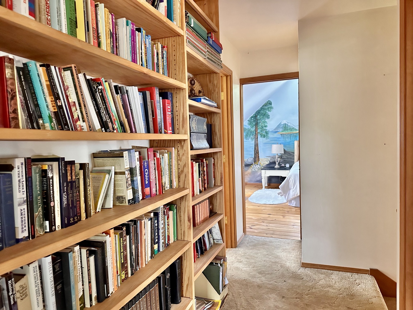 • King Bedroom 2: Custom mural depicting nearby river and forest landscapes