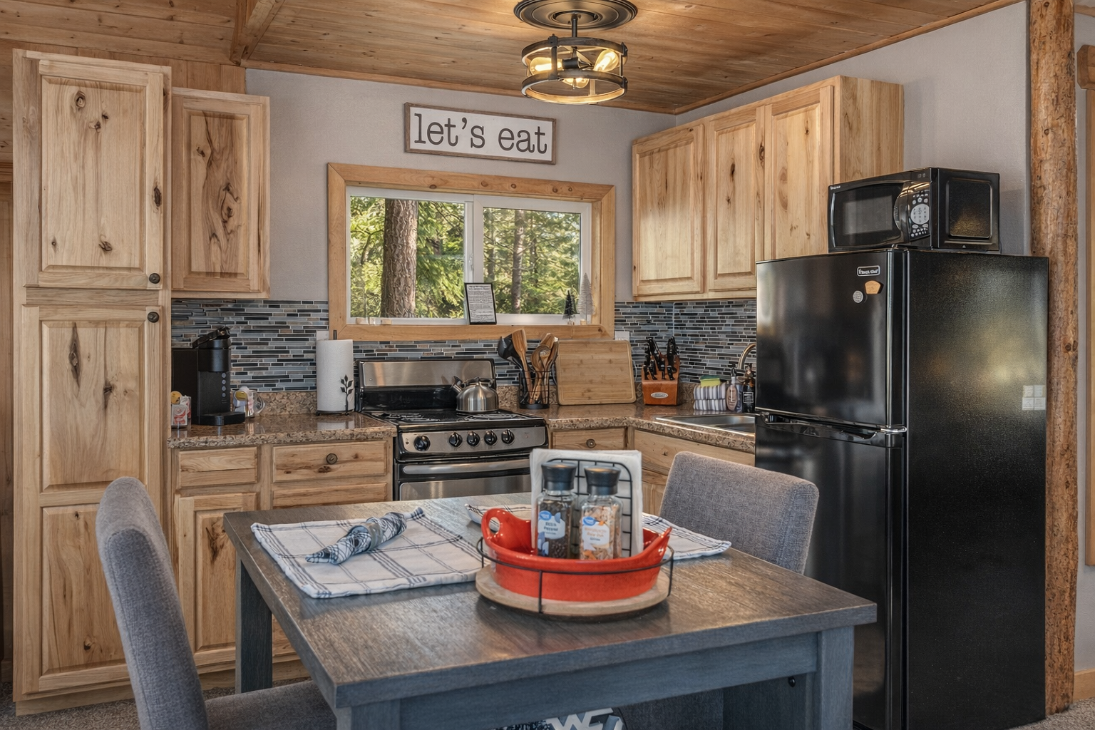 Nicely appointed little cabin. Great for a couple or a small family.