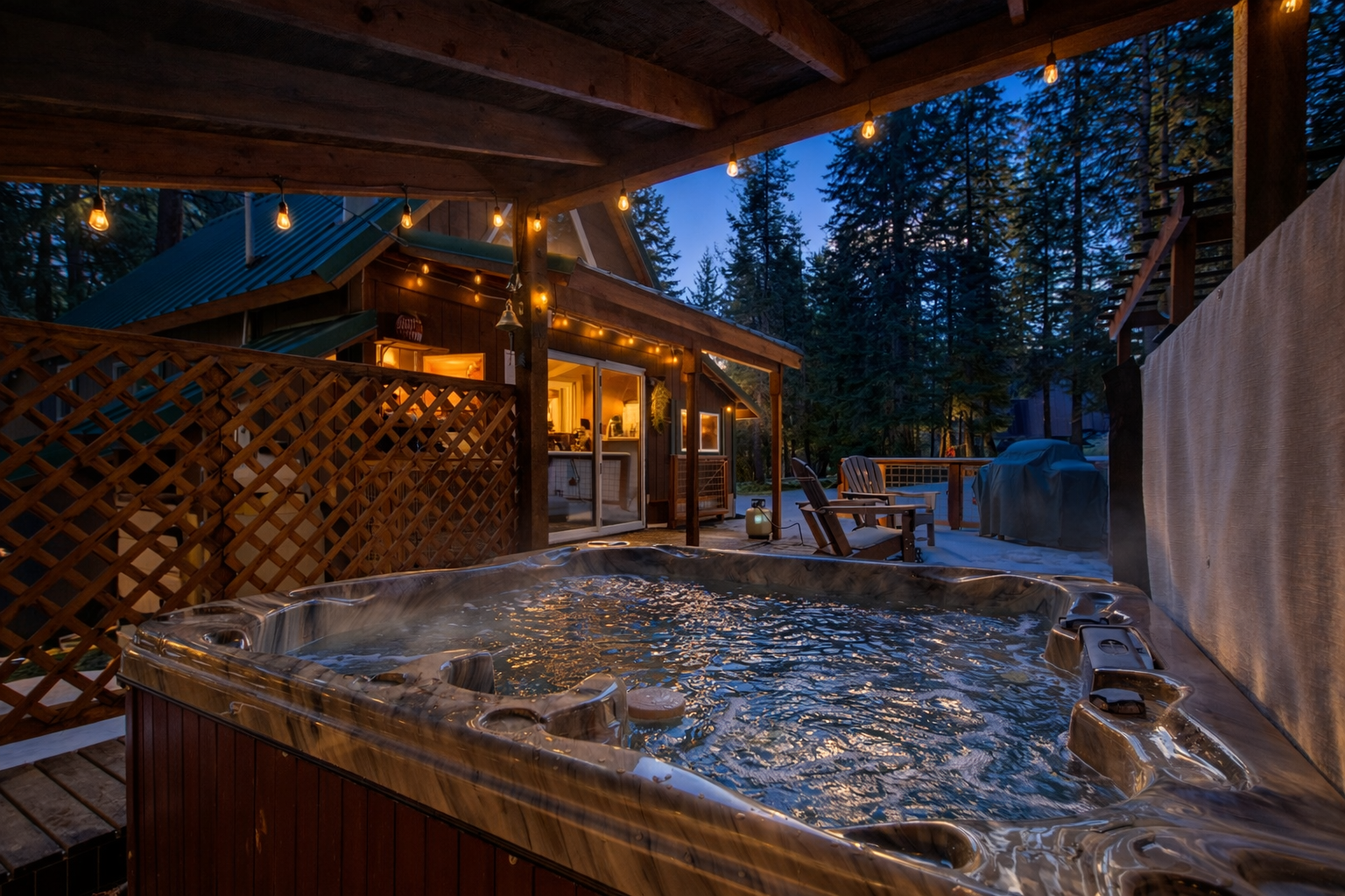 Cozy cabin. Lovely deck setup. Enjoyed the hot tub
