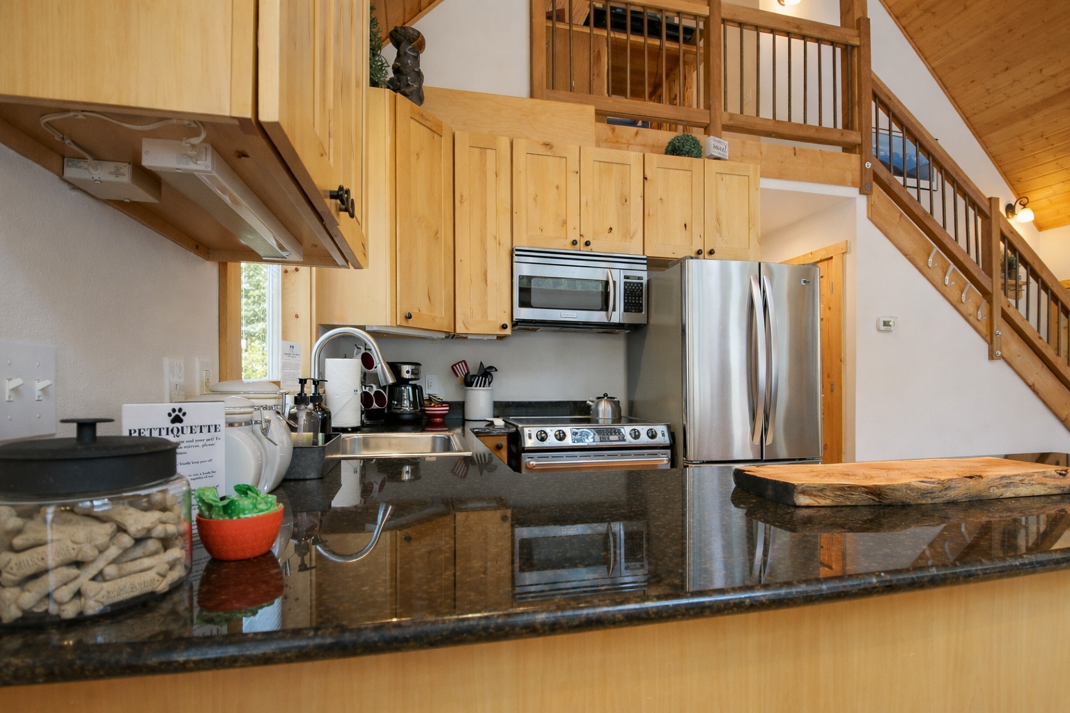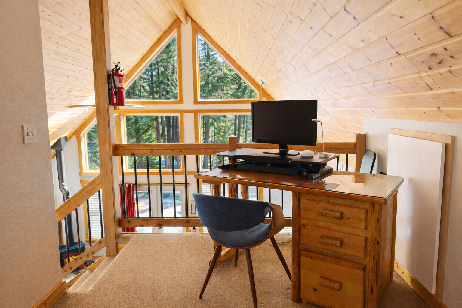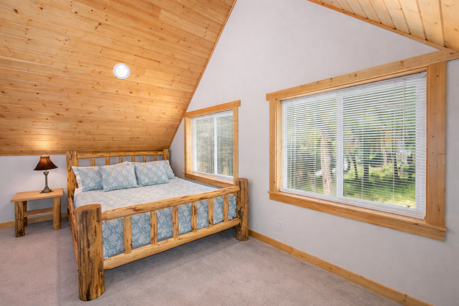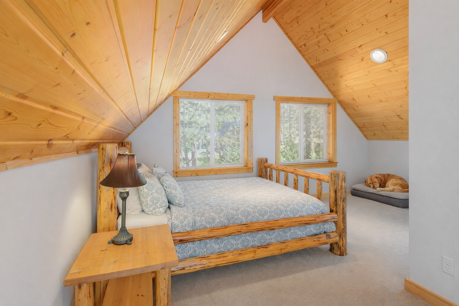 The loft provides added space, privacy, and rustic mountain charm.