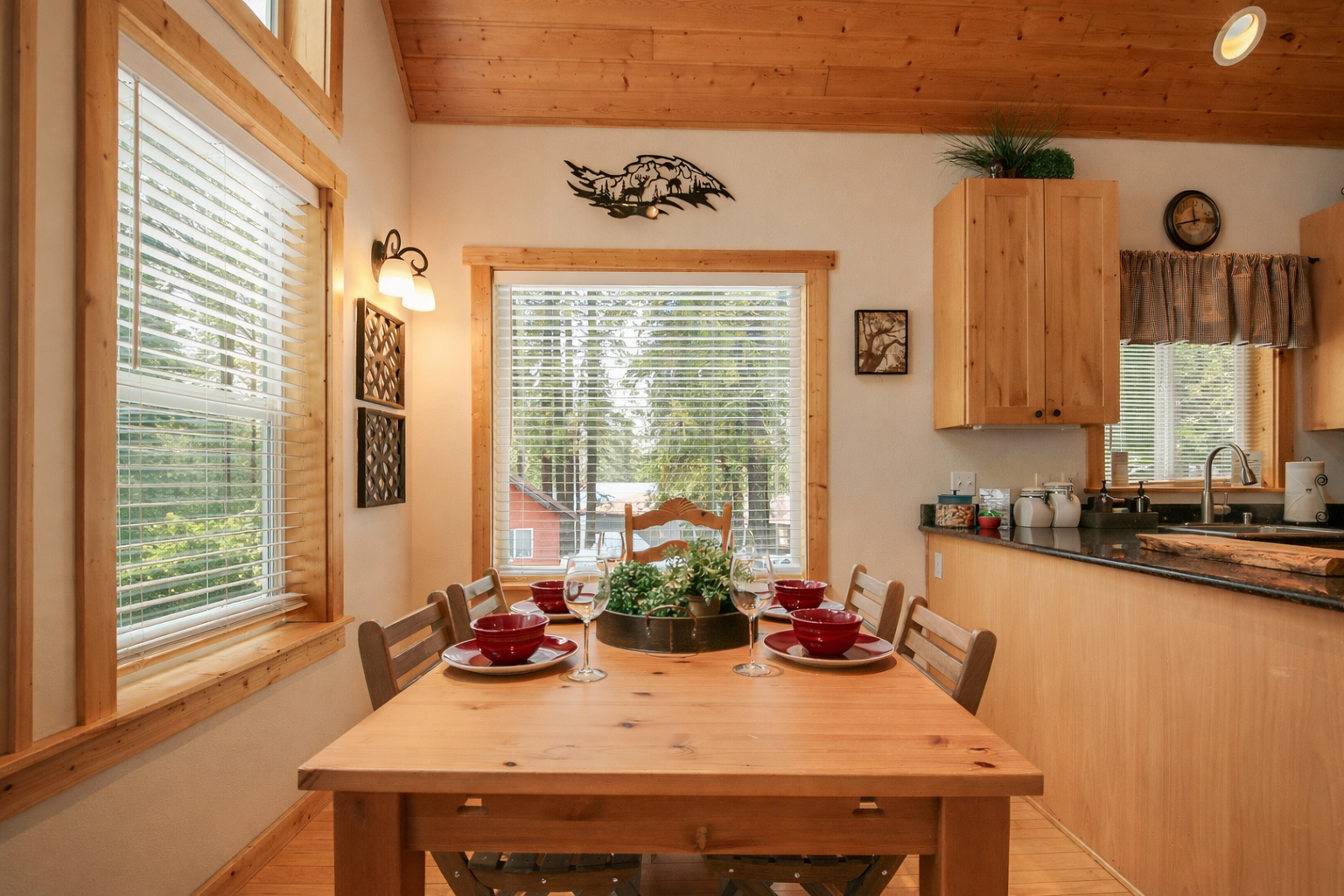 A dining area sits just off the kitchen—perfect for shared meals, game nights, or planning the next day's adventures.