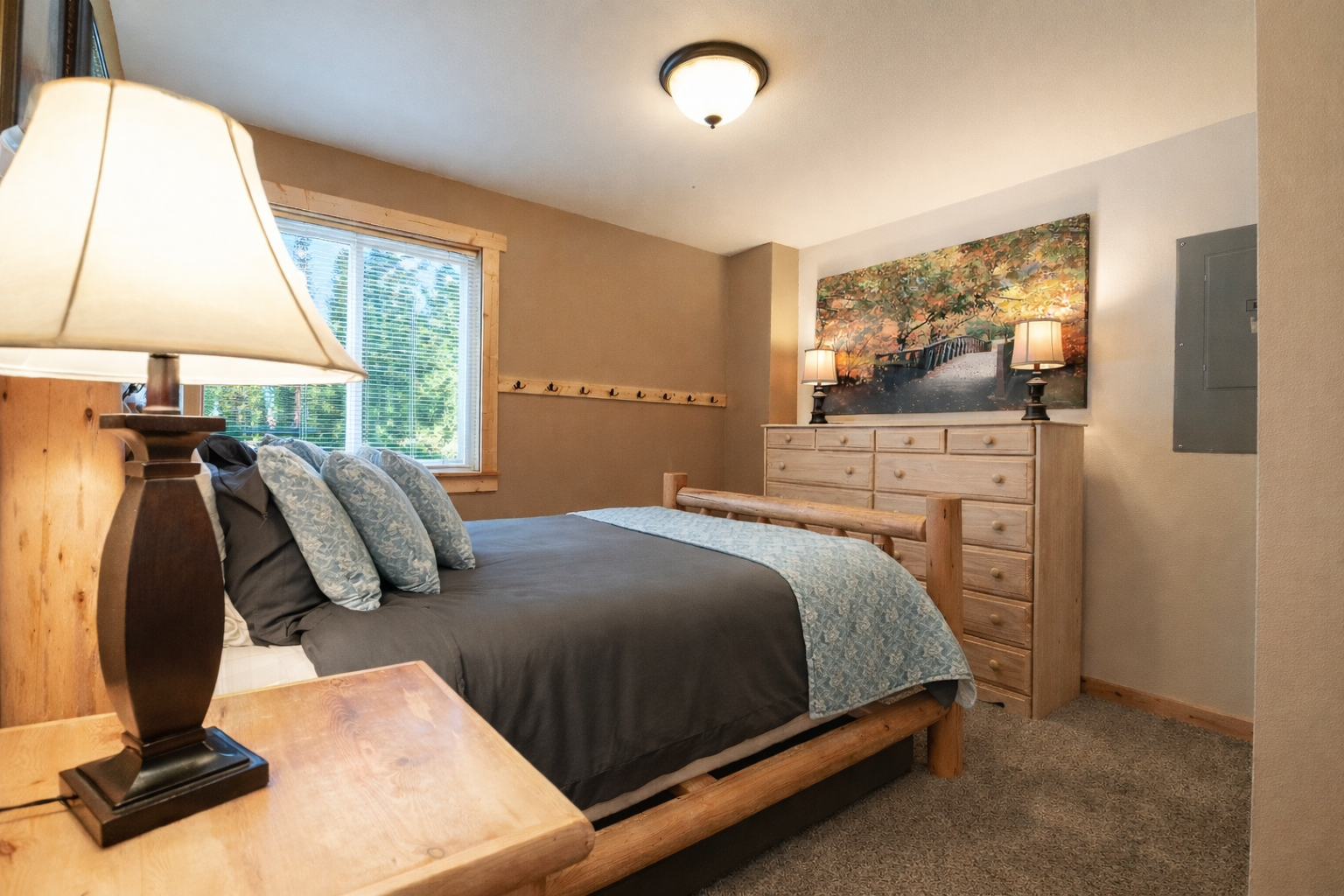 • Log queen bed