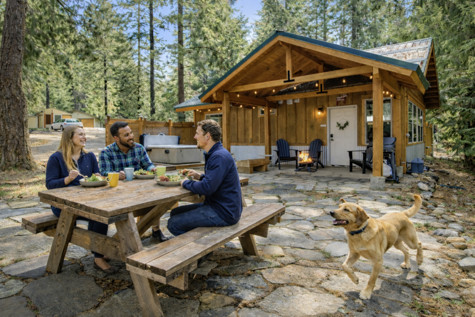 Super cute! We love this area! The hot tub was great, the fire pit, the comfy couches, the BBQ, close proximity to the river and Ponderosa Community Park, hiking trails and a quick drive to Plain. We wish we would have brought our Boston Terrier- she would have loved it. 2 complaints: way too friendly of neighbors. We didn't mind the no privacy but it was a bit awkward and I think they and us felt obligated to spark up a conversation. And the beds are not comfortable at all. I think with all the other perks and how the cabin has so much tender love and care put into it that the beds could be a very easy fix. We loved that there were fans in both rooms and the overall size is perfect for our small family! No wasted space at all! The TV and electric fire place super easy to use. The heated floors are perfect! And the rock patio is a great area to set up our travel hammock.