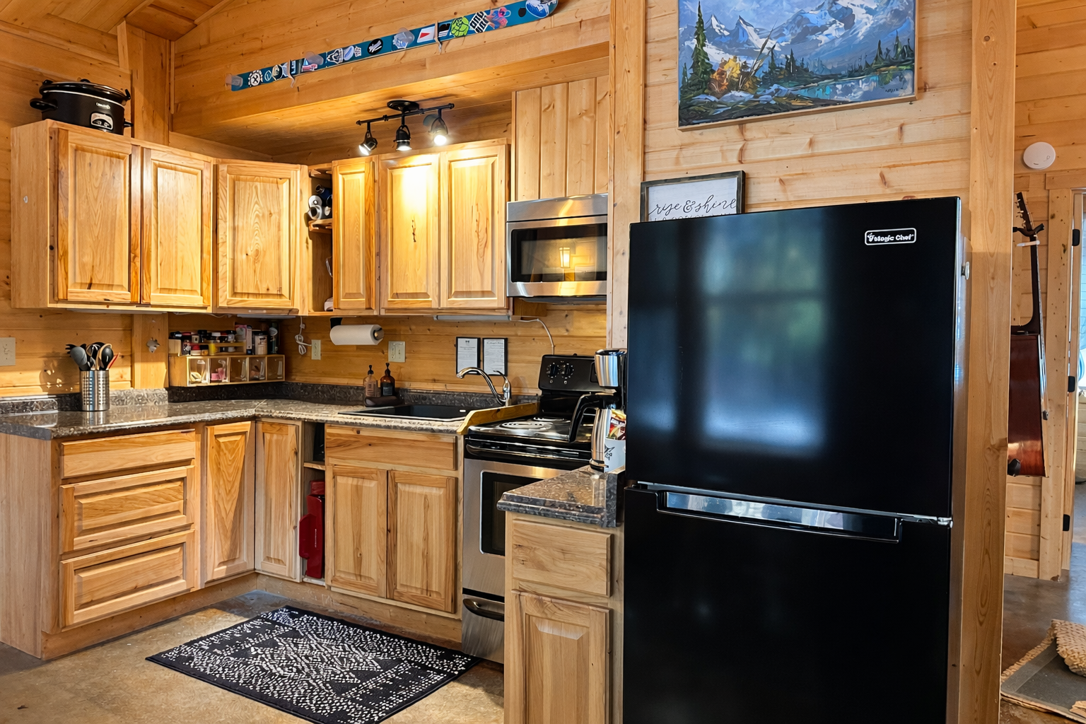 The cabin was really beautiful and exactly what we needed for a weekend get away! The kitchen had everything we needed to cook our meals and the space was so clean!
