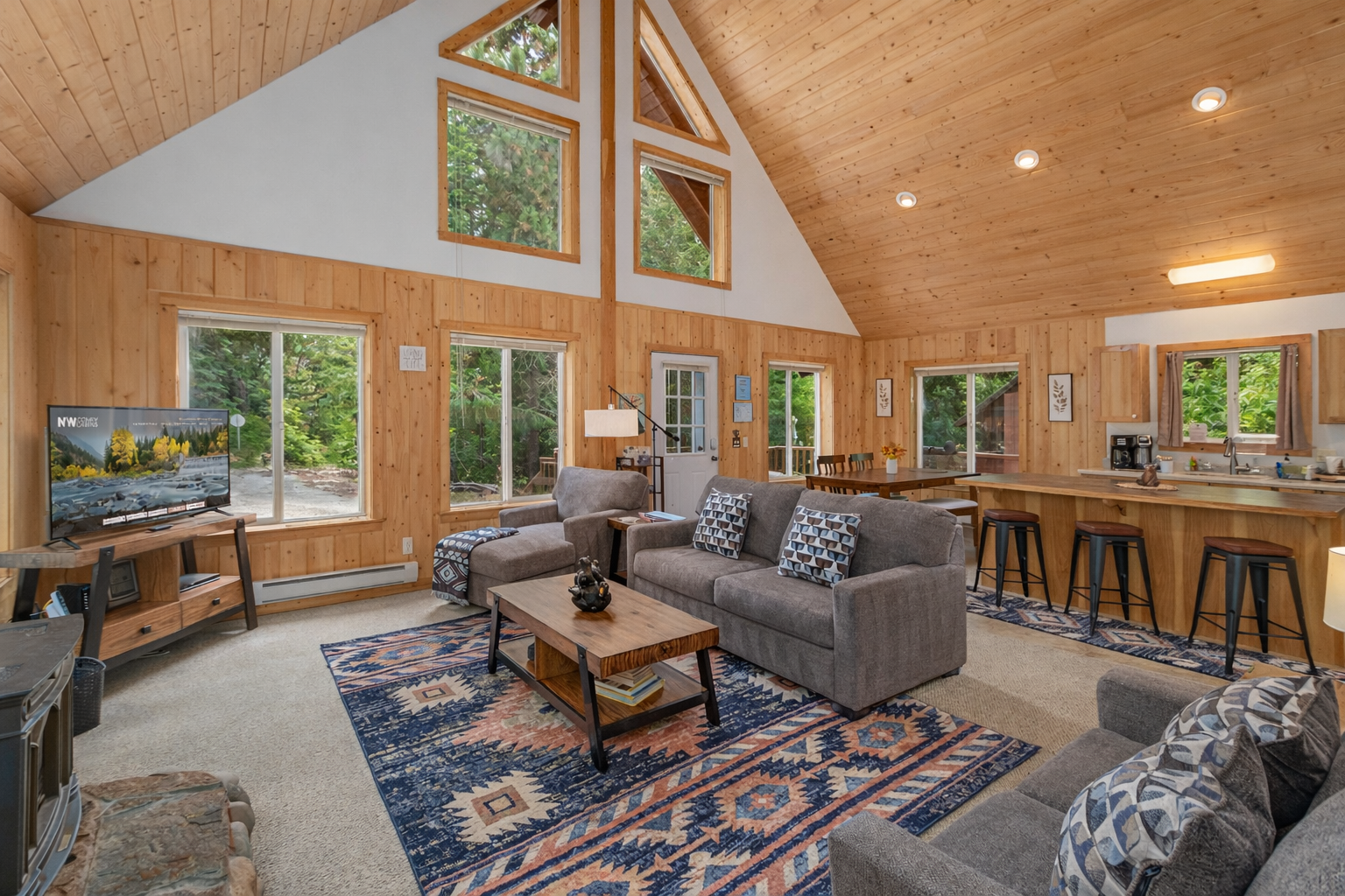 Welcome to Pine River Retreat (STR Permit 000416), a bright and inviting cabin tucked in a quiet neighborhood near Lake Wenatchee and Kahler Glen Golf Course. Designed with comfort, warmth, and ease in mind, this two-bedroom haven features soaring ceilings, abundant natural light, modern amenities, and a private hot tub for soaking under starlit skies. Perfect for couples, small families, or friends seeking a cozy, pet-friendly escape, Pine River Retreat blends homey comfort with the beauty of the Cascades.