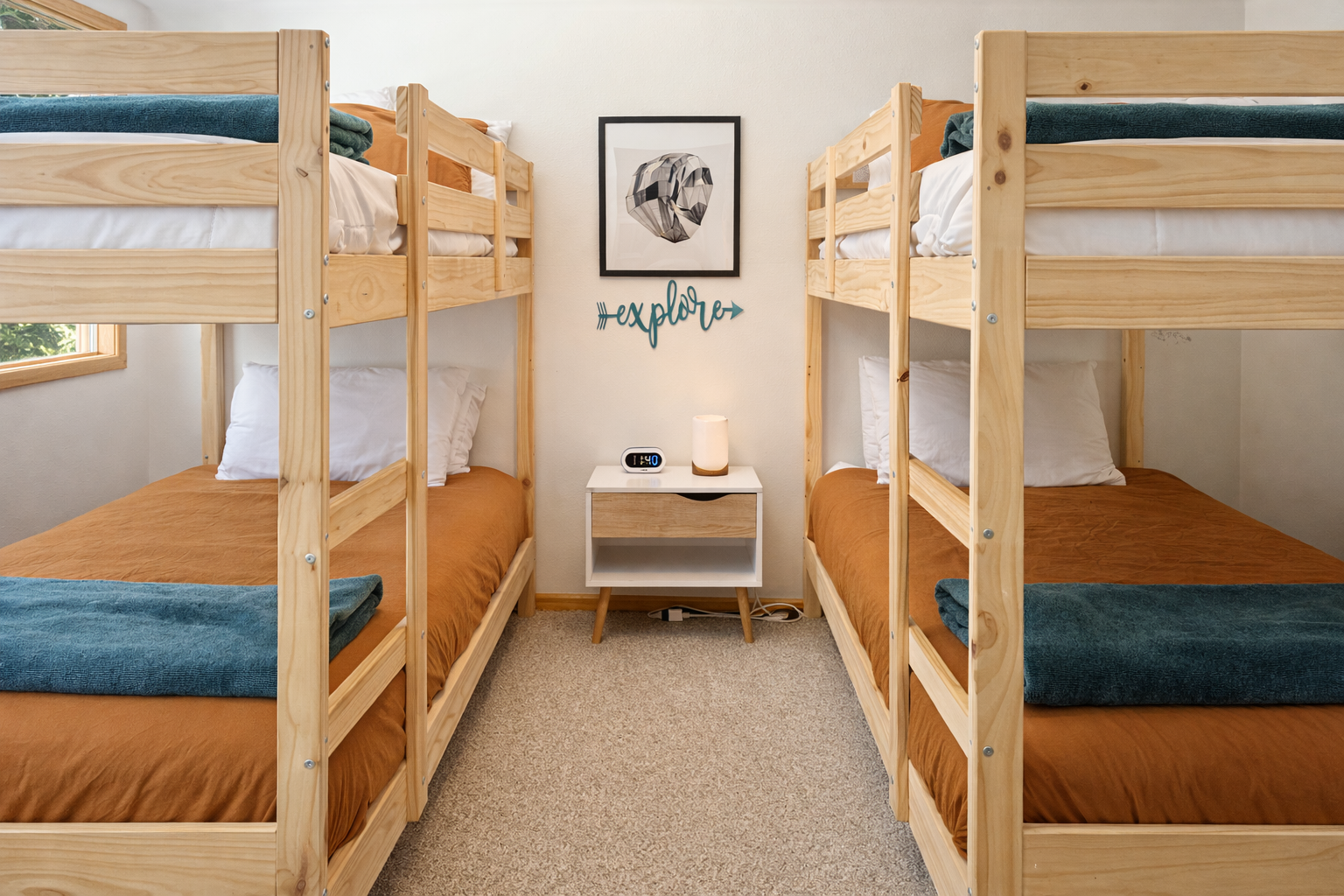 • Bedroom 3: Twin bunk beds—perfect for kids or friends