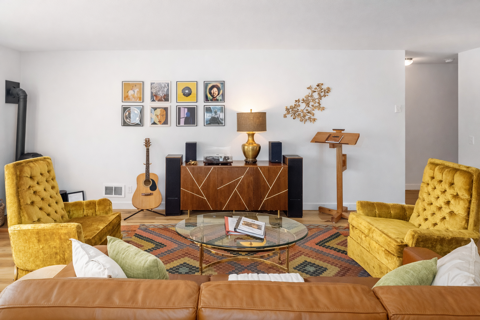 Warm, spacious, and thoughtfully furnished, the living room welcomes you after long days of hiking, skiing, or exploring. Enjoy: